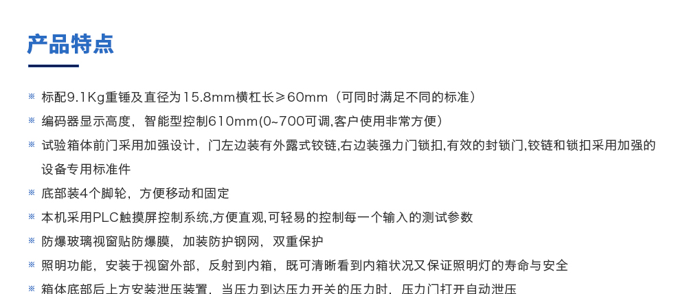 用途:電池重物沖擊試驗機是模擬通過從不一同的高度的不同的重錘和不同的受力面積測試電池的安全性能,按規定進行試驗,電池應不起火、不爆炸。也是各電池廠家及研究所必不可少的檢