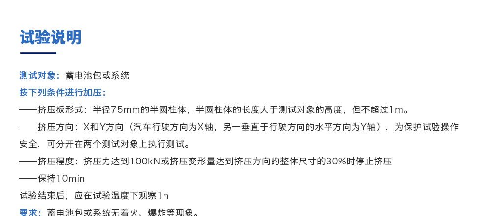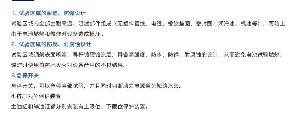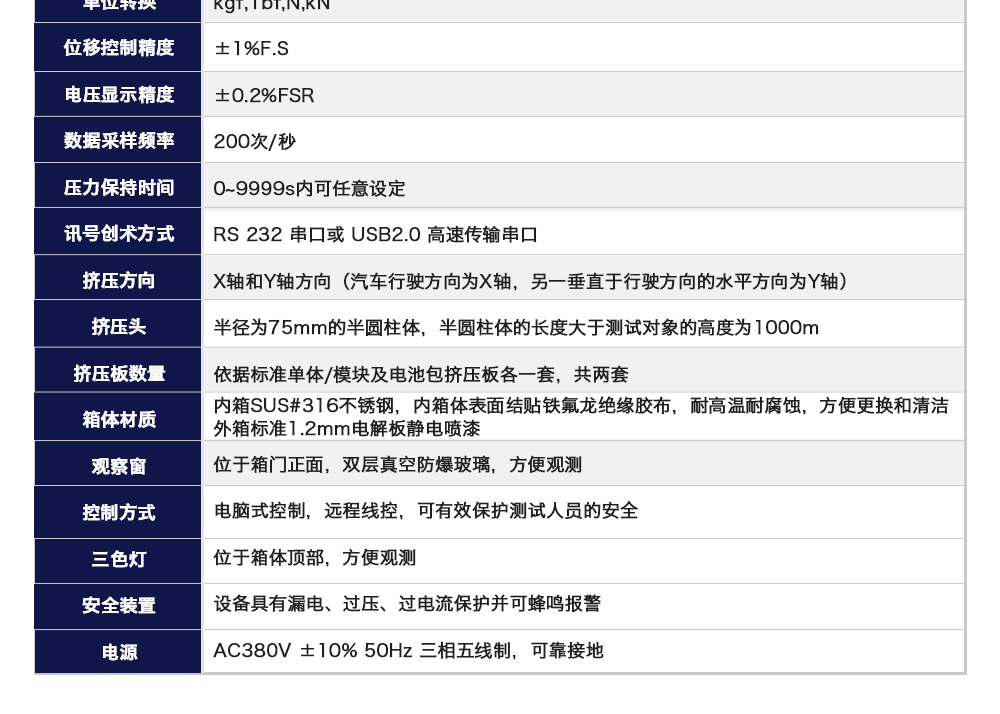 用途:電池包擠壓試驗(yàn)機(jī)模擬各類動(dòng)力動(dòng)力電池包和系統(tǒng)在運(yùn)輸、儲(chǔ)存及使用過(guò)程中電池包遭受碰撞擠壓的情形,人工呈現(xiàn)電池在遭受擠壓時(shí)可能出現(xiàn)的不同狀況。