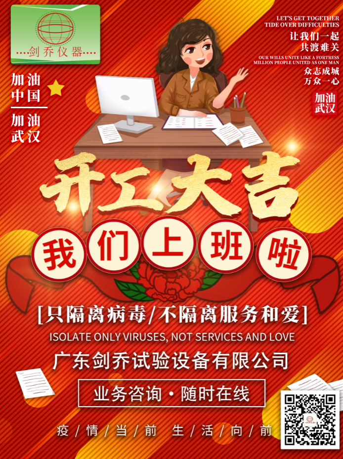 為加強新型冠狀病毒感染肺炎疫情防控工作,有效減少人員聚集,阻斷疫情傳播,更好保障職工生命安全和身體健康,按照黨中央、國務院防控工作部署,根據《中華人民共和國突發事件應對法》《中華人民共和國傳染病防治法》和廣東省突發公共衛生事件一級響應機制的有關規定劍喬儀器延長2020年春節假期,已于2月10日正式復工