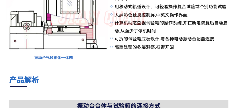 用途:新款三綜合試驗(yàn)箱(JQTHV-500):主要是試驗(yàn)箱和振動(dòng)試驗(yàn)系統(tǒng)的綜合,試驗(yàn)時(shí)將溫度、濕度、振動(dòng)(高溫或低溫),(正弦振動(dòng)或隨機(jī)振動(dòng))以及電應(yīng)力按規(guī)定的周期綜合在同一氣候試驗(yàn)箱中。