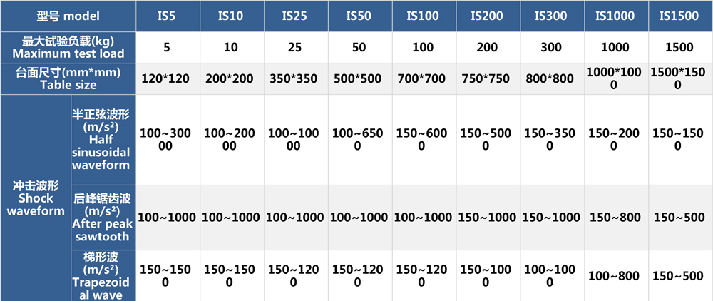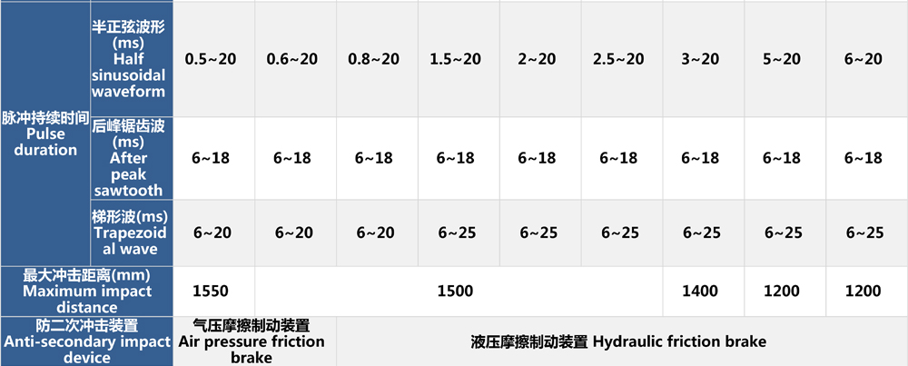 公司產(chǎn)品樣本中分別標(biāo)注出了各型號(hào)氣動(dòng)沖擊碰撞試驗(yàn)臺(tái)的空載和標(biāo)稱加載狀態(tài)下的速度變化量,用戶可根據(jù)自身試驗(yàn)指標(biāo)來選擇適合自身需求的沖擊臺(tái)。